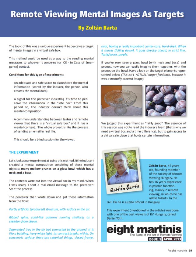 The perceptual process aimed at detecting a mental image that was placed inside a virtual “safe”, and it unfolded as follows.